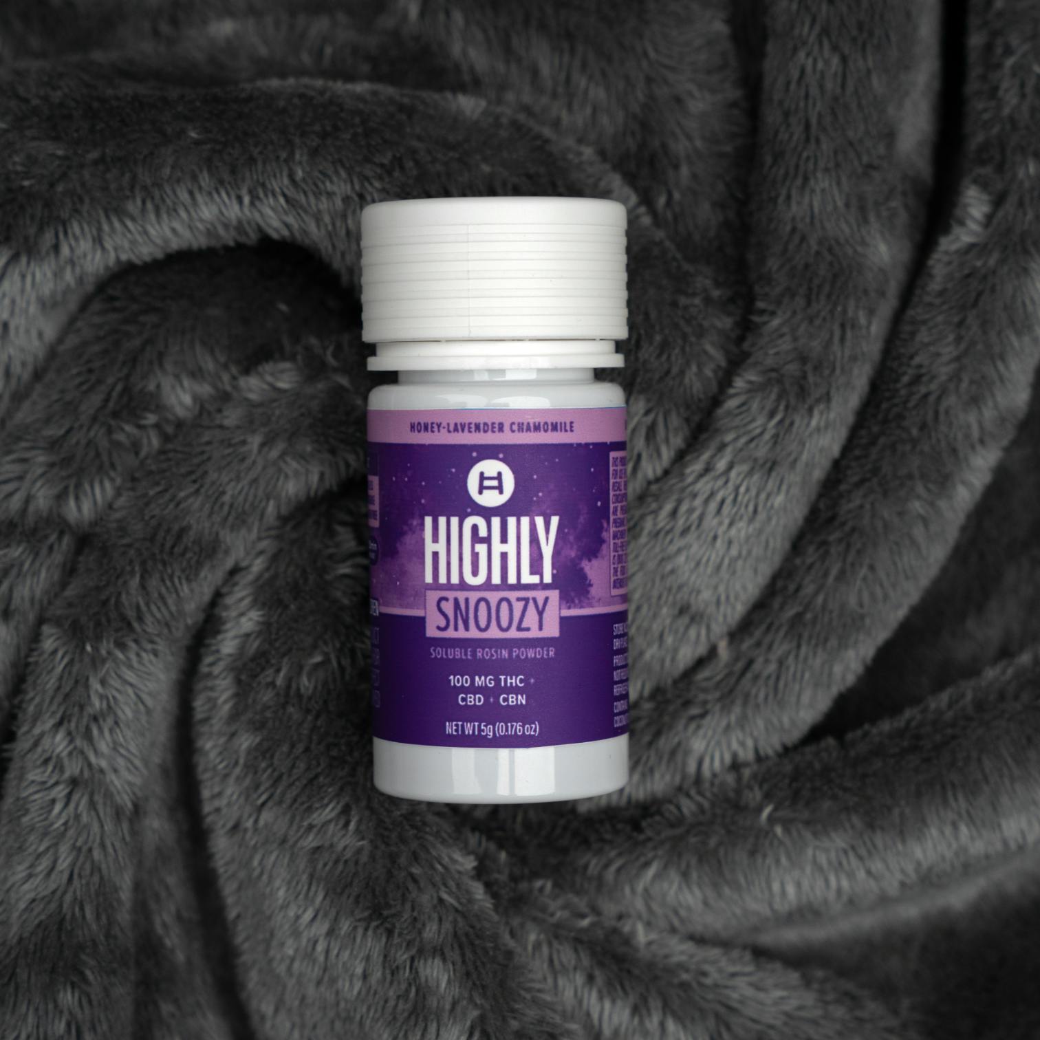 HIGHLY SNOOZY - HONEY LAVENDER CHAMOMILE FLAVOR WITH THC, CBN, 1:1 - SOLUBLE ROSIN POWDER - 100 Mg