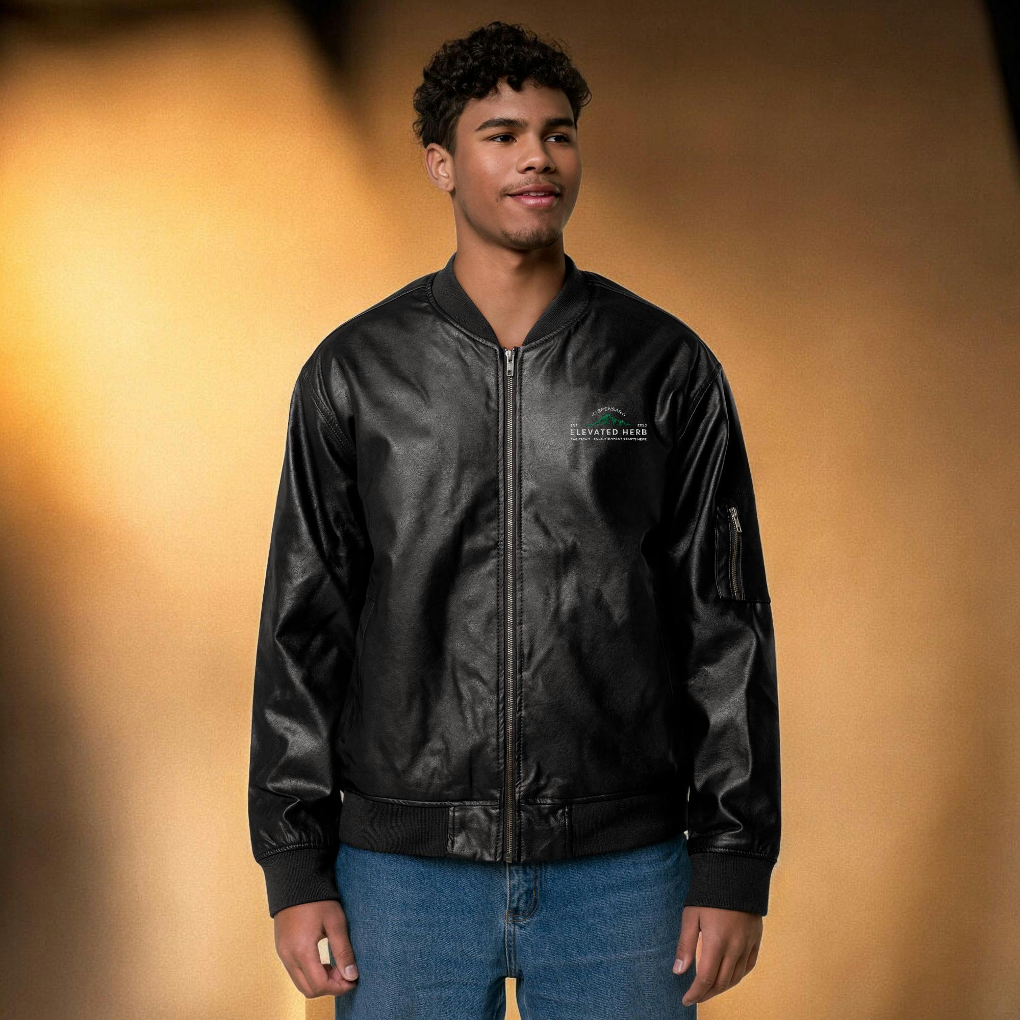 ELEVATED HERB LOGO - LEATHER (FAUX) BOMBER JACKET - Medium